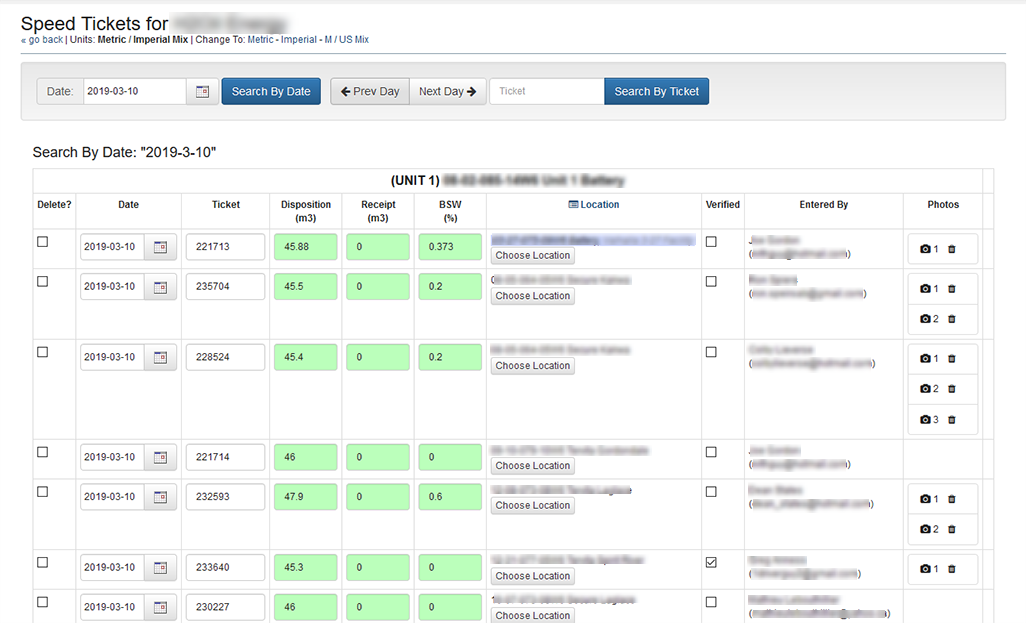 You can search by ticket date, skip between days, and search by ticket nunmber.